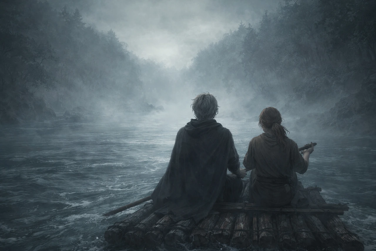 그는 루벤의 절규에도 아랑곳하지 않고 뗏목을 고정하고 있던 밧줄을 단검으로 끊어버렸다.