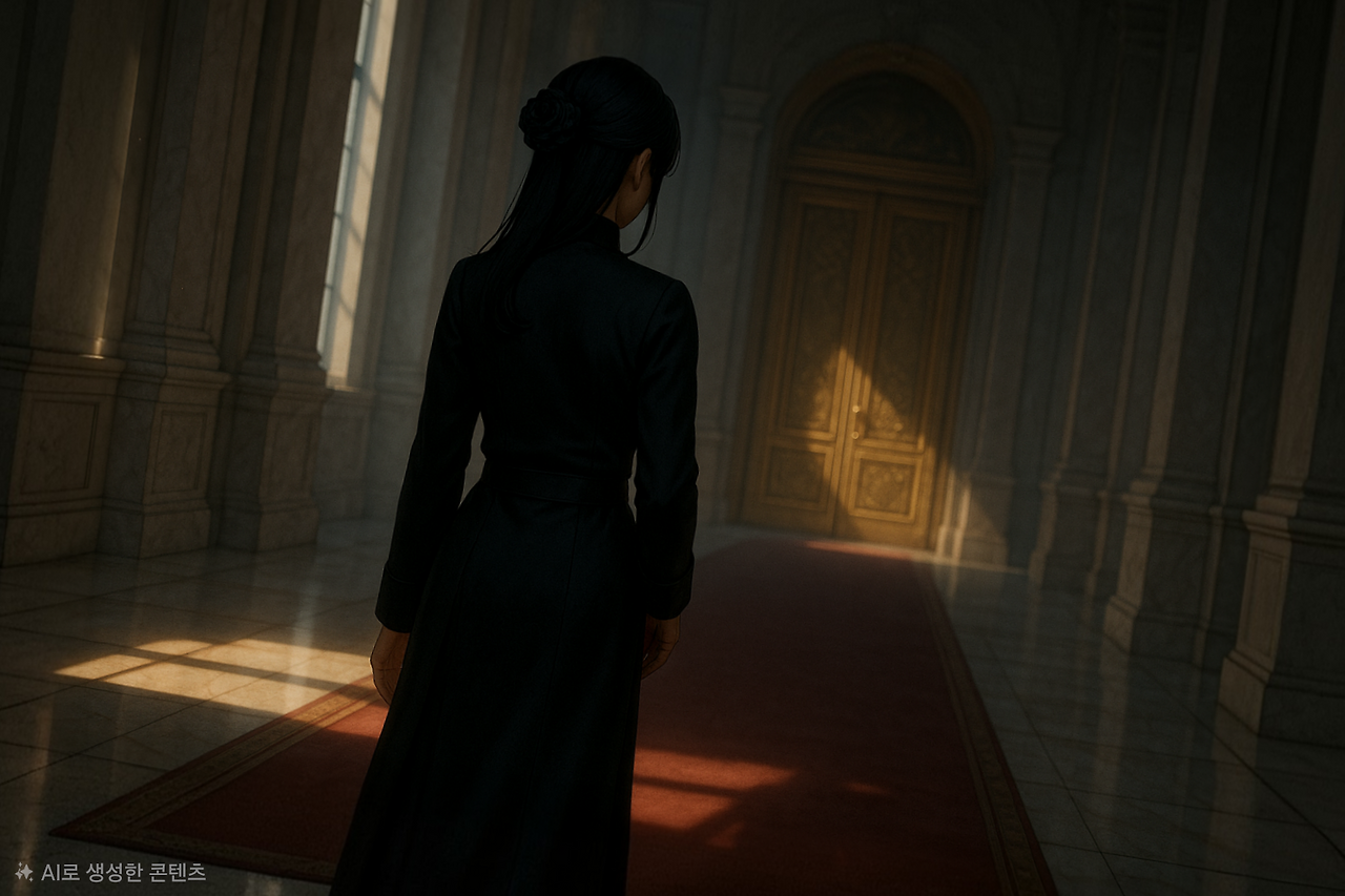 붉은 융단 위의 발걸음이 다시금 고요히 움직였다.