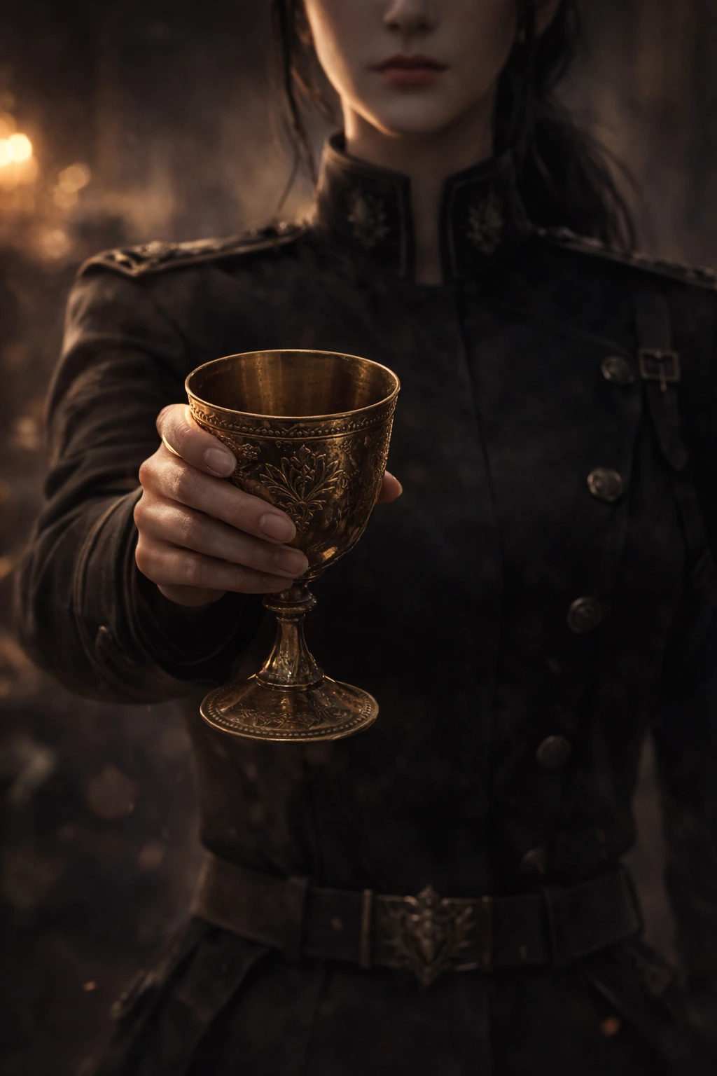 차가운 금속 잔의 가장자리가 루크레티나의 기품 있는 가슴 윗부분을 꾹 눌렀다.