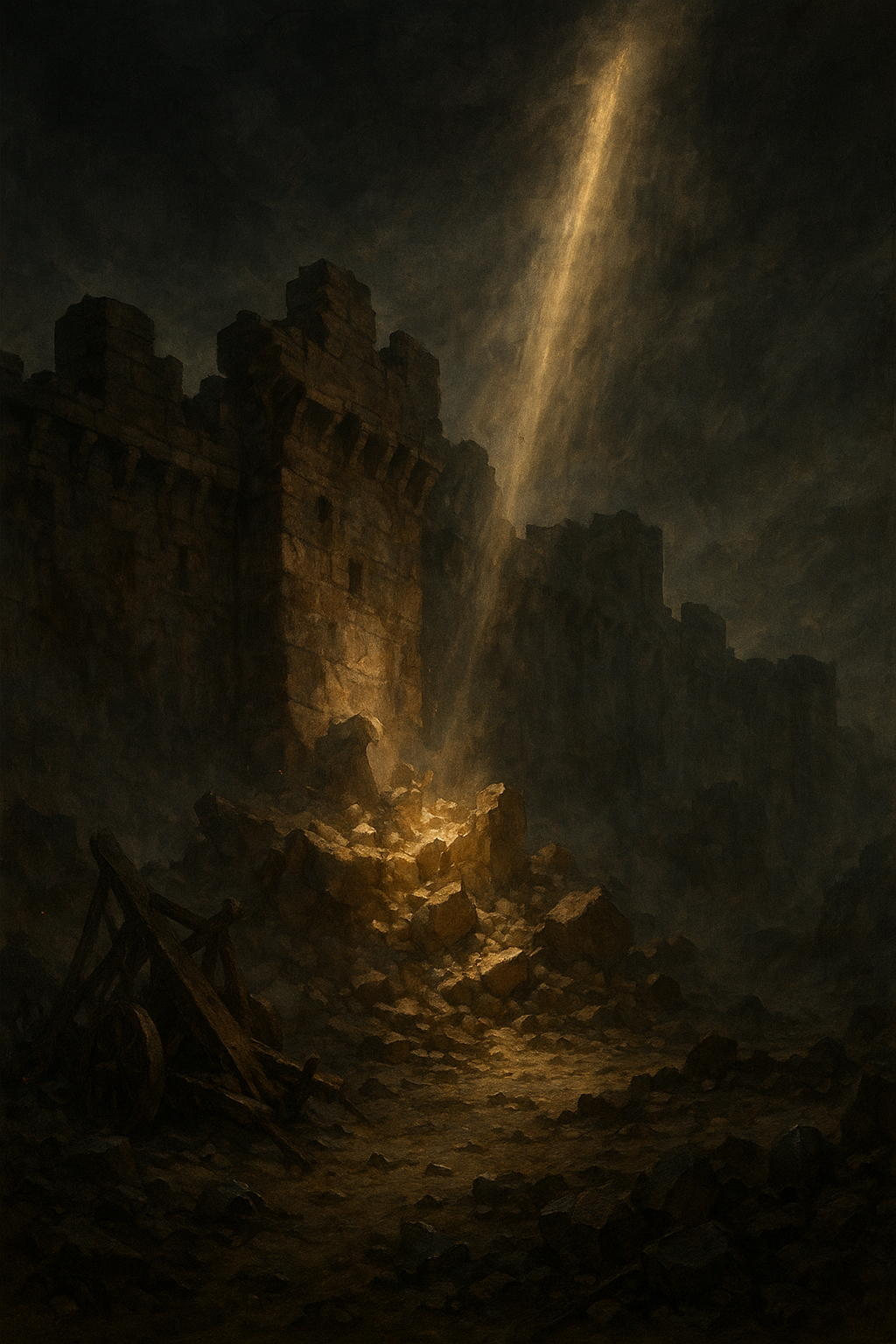 그는 채석장과 수도원에서 노획한 전리품을 꺼내 들었다.