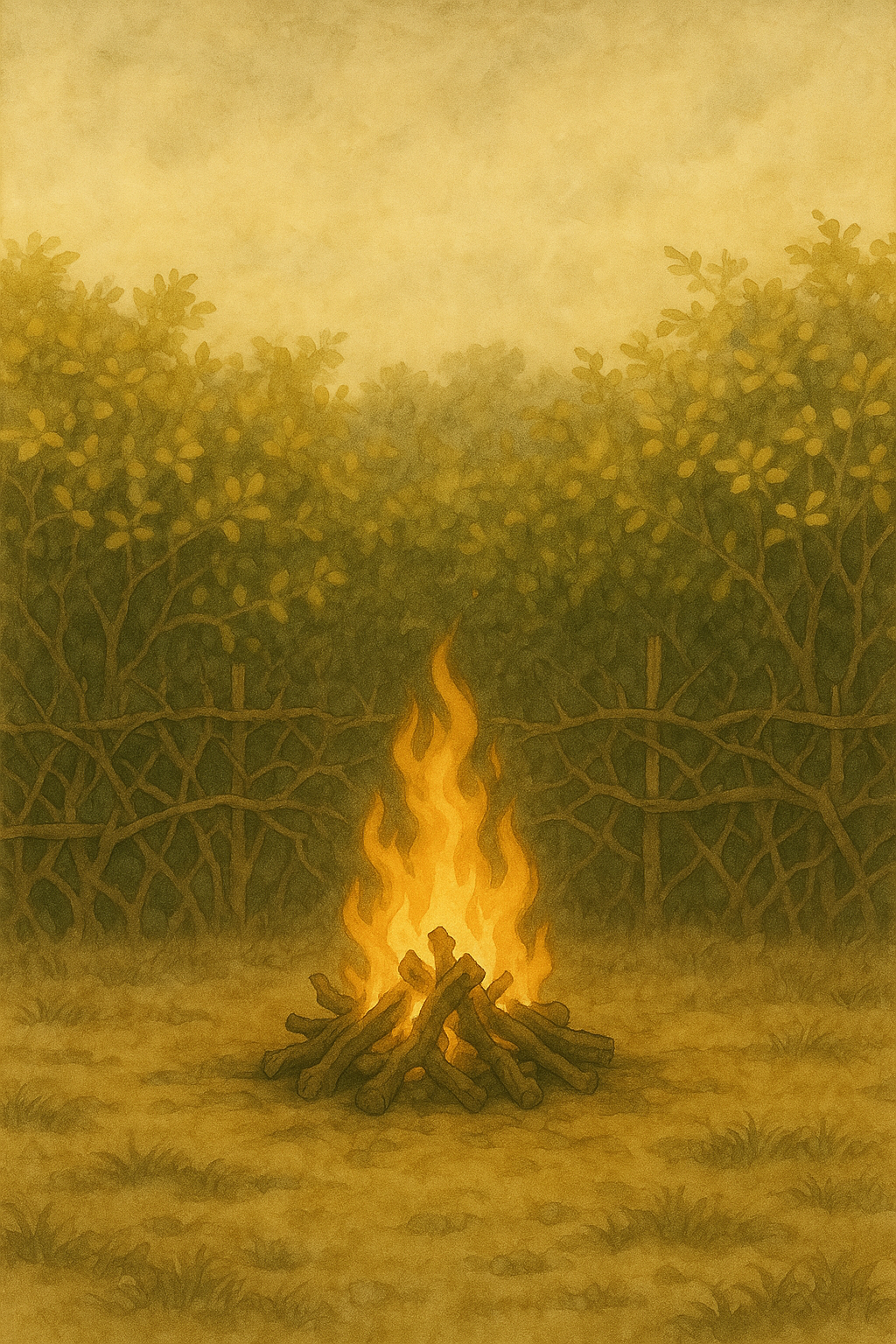 차갑게 얼어붙은 손을 장작불에 가까이 내민다.