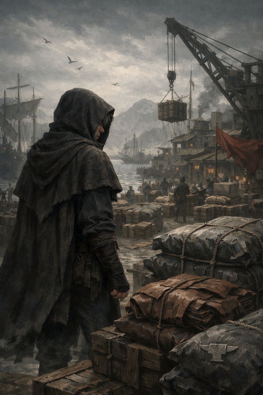 후드 속 청년의 시선이 가죽 뭉치의 두께를 훑고, 철광석 포대에 박힌 제련소의 직인을 스쳤다.