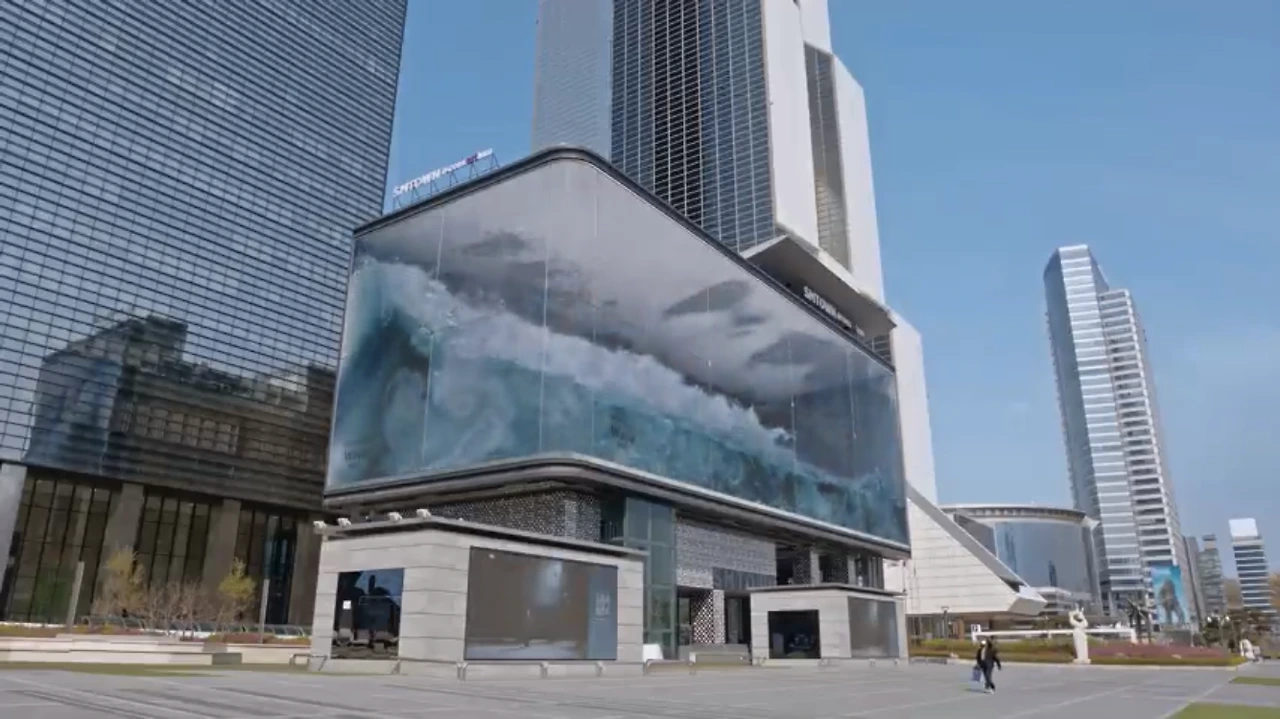 코엑스 근처 SM 타운 외벽에 설치된 큰 전광판. 대형 수조 속 파도가 치는 모습을 보여준다. 지나가던 사람들도 놀라고 눈길을 떼지 못한다. 당장이라도 눈앞에 쏟아질 것 같은 물 때문이다. 대형 수조 안에 물이 있는게 분명한데, 물이 아니란다. 미디어아트 작품 <WAVE> 이야기다. 이 파도는 큰 화제가 되며 뉴스, SNS 등에 소개되기 시작했다. 나 역시 이 파도를 본 순간을 잊지 못한다. 그만큼 멋있는 기술이었고, 압도적인 매력을 가진 작품이었다. 대표작품인 만큼 제주 아르떼뮤지엄에서도 <WAVE> 작품을 만날 수 있다.