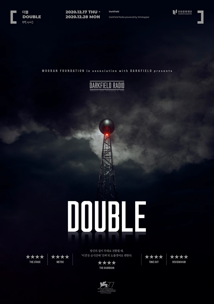 2020 베니스 국제영화제 VR 부문에 초청되어 작품성을 인정받았다는 영국의 이머시브 오디어 시어터 '다크필드' 극단의 작품이다. '더블'은 2020년 런칭한 다크필드 라디오 시리즈의 첫 작품, 우란문화재단의 기획으로 우리나라에서도 한국어 버전으로 12월 17일 바로 오늘부터 접할 수 있게됐다.