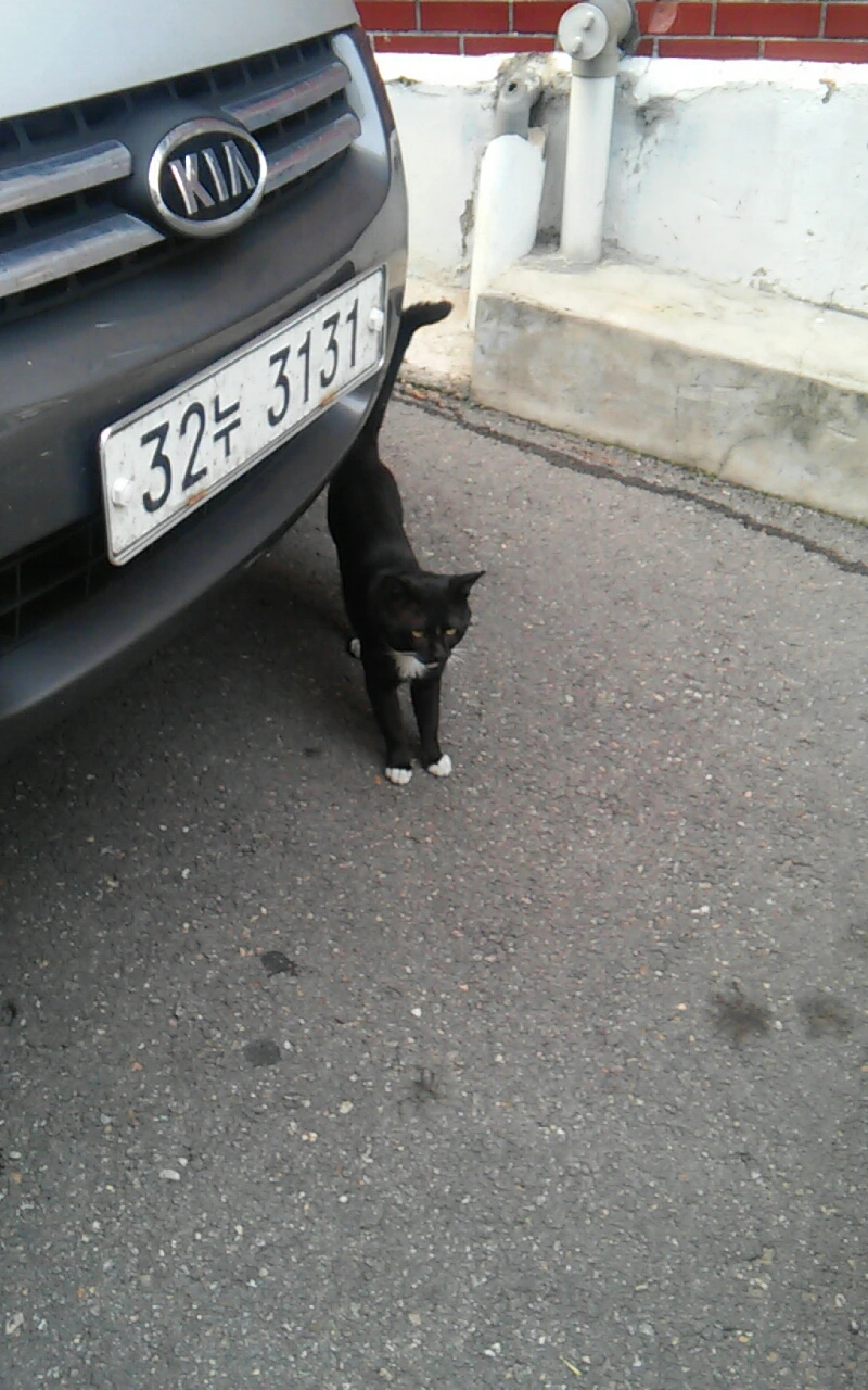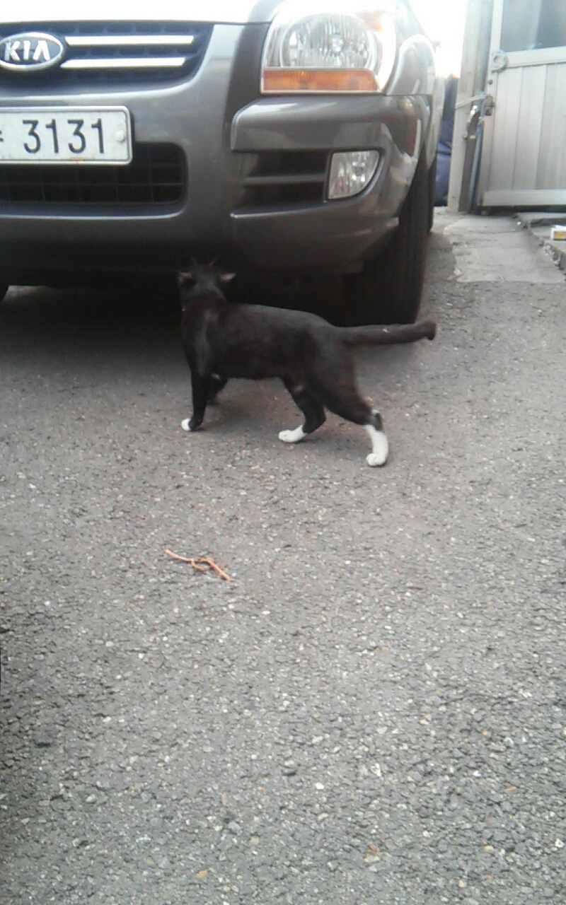 그때. 갑자기 나타난 멋진 턱시도를 차려입은 냥이.마치 따라 오라는 듯 . 앞서가다 뒤돌아본다.