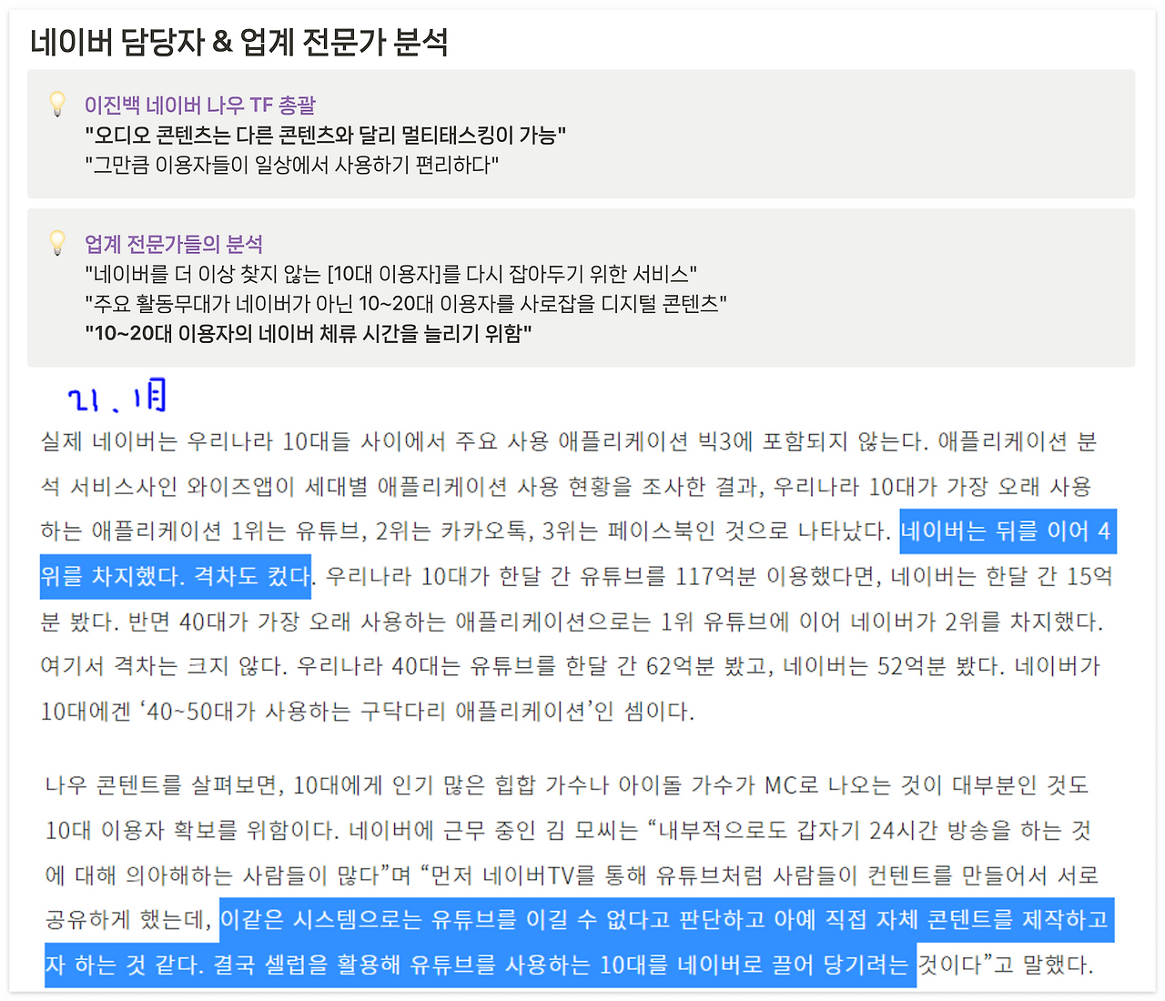 가장 기본이지만 의외로 많이들 간과해 놓치는 부분이다. 서비스를 공부할 때는 나만의 시각도 중요하지만 그전에 이 서비스를 만든 네이버가 [기획 의도 & 사용자 효용]을 어떻게 정의했는지 알고 들어가야 한다. 그래야 서비스에 대한 헛소리를 방지할 수 있으며, 맥락을 이해했을 때만 보이는 현재의 문제점/기회 요소가 있기 때문이다.