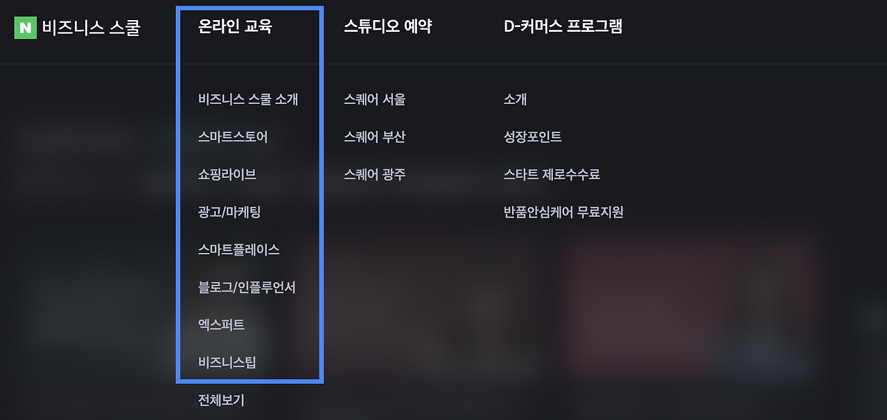 위의 네 번째 체크리스트는 지원자에 따라 현실적으로 체험해 보기 어려울 수도 있다. 평범한 대학생 신분이었던 밍꾸도 이를 보완하고자 네이버 비즈니스 스쿨 강의 일부를 수강했다. 네이버 비즈니스 스쿨에는 중소상공인 및 창작자가 네이버의 다양한 디지털 전환 상품과 플랫폼을 쉽게 사용하도록 안내해 주는 무료 영상 강의가 있기 때문. 서비스를 탐색하며 궁금했던 공급자 view의 페이지가 있다면 관련 내용이 있는 강의를 골라보자. 해당 기능을 설명해 주실 때 일반 사용자로서는 직접 보기 어려웠던 페이지의 예시 이미지도 나오므로, 구체적으로 어떤 tool이 있고 UX는 어떤지 대략적으로 파악할 수 있다.