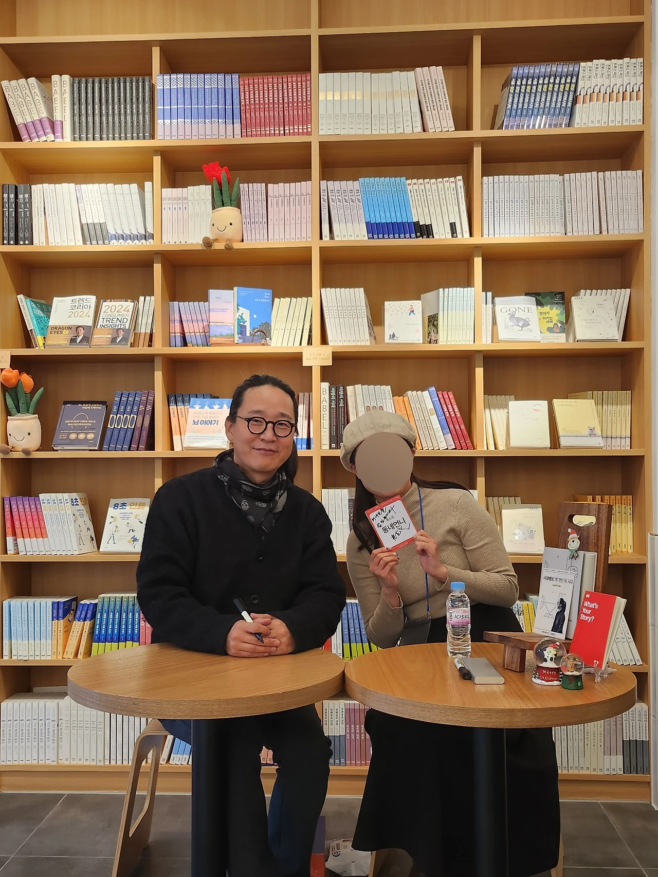 행사가 진행되는 내내 작가님의 표정과 독자들의 표정을 체크했다. 북토크가 한 시간 정도 지나자 작가님께서는 자리에서 일어났다. 모임에 왔던 독자들이 심도 있는 질문들을 준비해 왔기 때문에 작가님이 질문 하나하나를 받을 때 흥미로워하셨다고 감히 추측해 봤다. 다시 한번 얘기해도 모임은 성공적이었다.