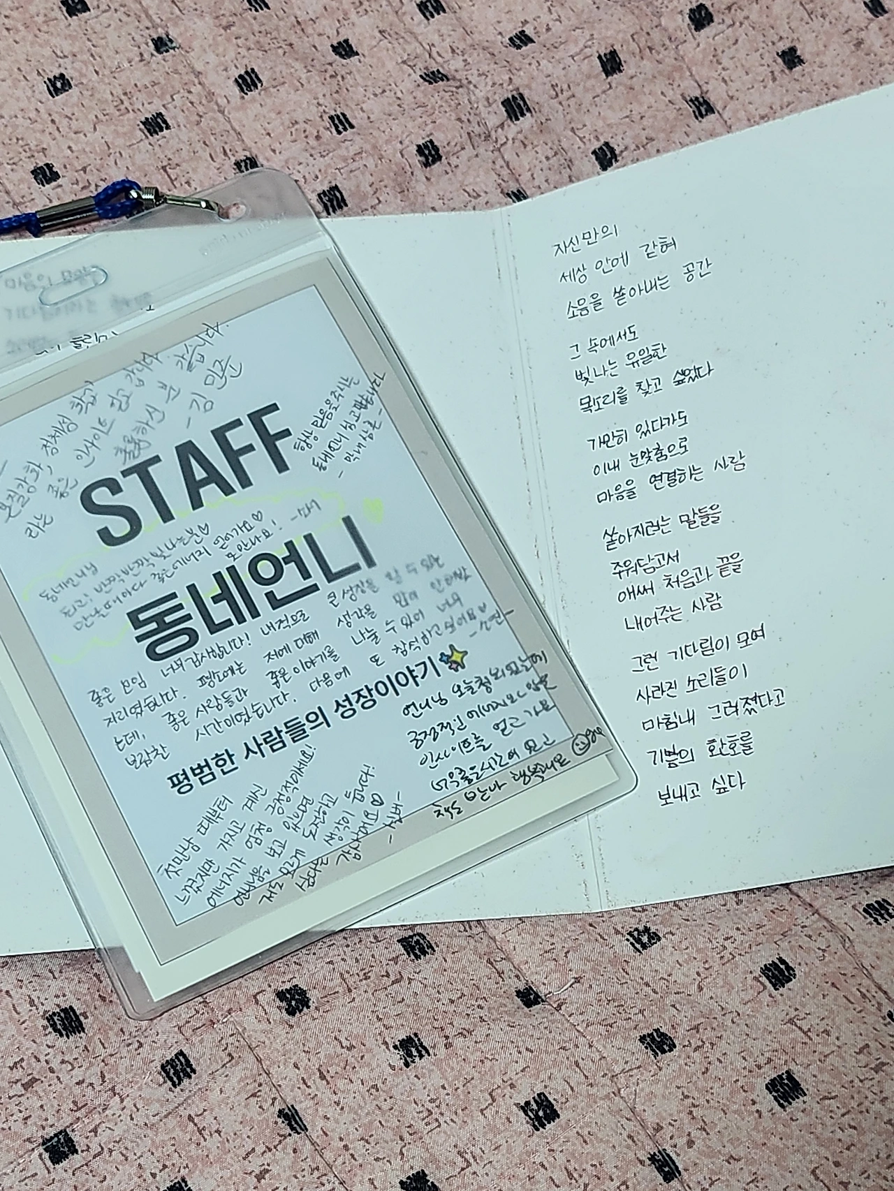 그 일이 있고 나서 며칠 후 문토에서 처음으로 자유 독서 모임을 진행하게 됐다. 열다섯 명이 모이는 자리였고 처음 진행하는 콘텐츠이다 보니 잘 진행해야겠다는 생각이 들었다. 나는 타임 테이블을 짜고 그날부터 멘트 연습을 하기 시작했다. 아무 생각 없이 반복해서 멘트를 숙지하고 있을 때 문득 동생이 생각났다. 황금마이크를 가지고 끝없이 멘트 연습을 하는 모습을 보며 귀에 딱지가 앉겠다고 생각했는데 내가 동일하게 그러고 있던 게 아닌가.