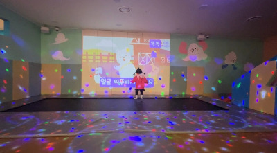 대형 스크린에 나오는 뽀로로와 동물들의 이름을 외치며 신나게 뛰기 시작한다.