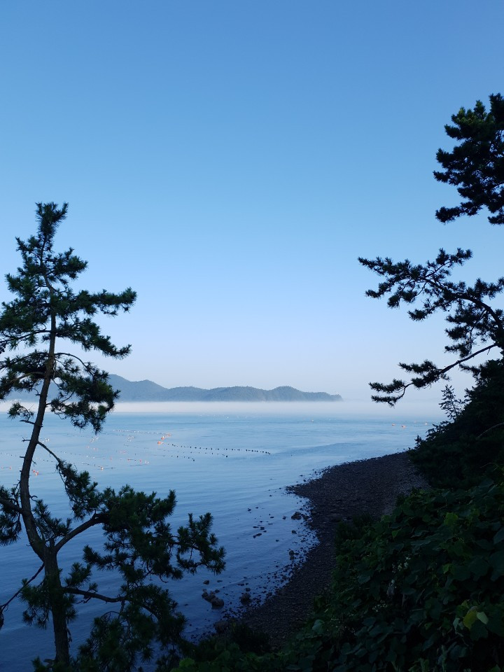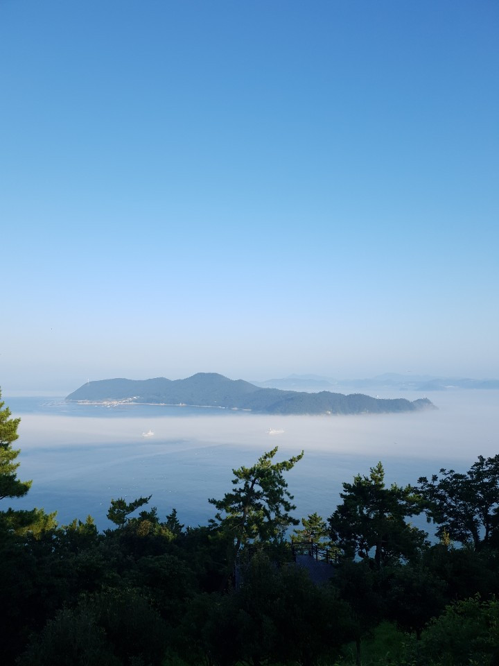 가족 모두 땀에 절어 씻고 싶은 마음이 간절했지만, 해남 땅끝마을로 진입할 때 그림 같은 해무를 보고는 바로 모노레일을 타러 갔다. 모노레일을 타고 올라가며 그리고 올라가서 본 바다와 해무는 정말 멋진 풍경이었다. 대낮에 어떤 원리로 안개가 바다 중간에 낀단 말인가. 말로만 듣던 해무를 직접 보니 신기했다. 함께 신기해하는 가족들을 보면서 흐뭇하고 행복했다. 그래서 사진을 많이 찍었다. 사진을 많이 찍었다는 것은 기억에 잘 남기고 싶은 마음을 방증한다.