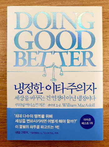 하지만 1년 전 어느 날 교수님과 상담을 한 적이 있습니다. 교수님께서는 저의 이력을 보시고는 봉사활동을 참 많이 했다면서 혹시 이쪽에 관심이 있는지 물어보셨습니다. 저는 그렇다고 했습니다. 그러자 교수님께서는 세상을 더 바람직하게 만들고자 한다면 그 방법의 일종으로 봉사활동을 할 수도 있겠지만 현재보다 더 큰 능력과 힘을 가지고 올바르게 사용해야 한다고 말씀해주셨습니다. 다시 말해, 교수님께서는 어떤 분야에서 돈이든 권력이든 그것을 가진 후에 사회에 보탬이 되도록 사용하라고 말씀해주셨습니다. 그때는 적잖게 충격을 받았습니다. 제가 생각하고 있던 사회 기여에 대한 관점을 바꾸게 되는 계기였습니다. <냉정한 이타주의자>를 읽고 그때 교수님 말씀을 떠올렸습니다. 어떻게 보면 교수님께서는 효율적 이타주의자와 같은 생각을 하고 계셨던 것 같습니다.