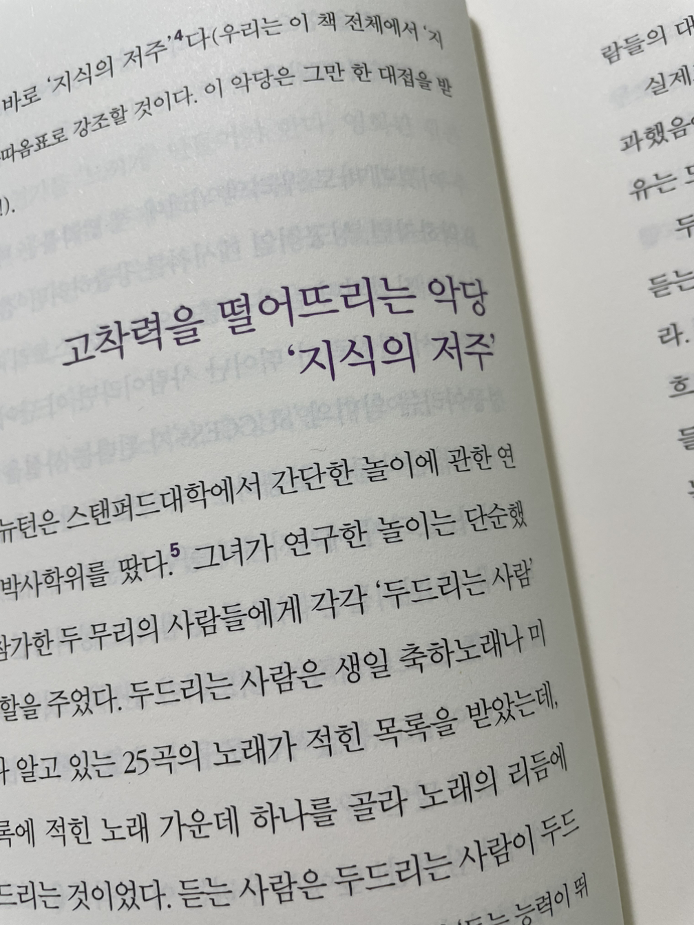 <스틱!>에서 가장 인상적인 부분은 지식의 저주였다. 일단 무언가를 알게 되면/알고 나면 알지 못하는 것이 어떤 느낌인지 상상할 수 없게 되는 것.