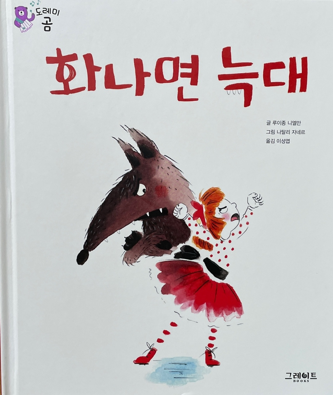 이 책이랑 비슷하게 육아의 지혜를 전해준 책이 하나 더 있는데, 그 책도 함께 소개할게. 바로 <화나면 늑대>라는 그림책인데, 이건 ‘도레미곰’이라는 전집에 포함되어 있는 책이라서 별도로 구하기 쉽지 않을지도 몰라.