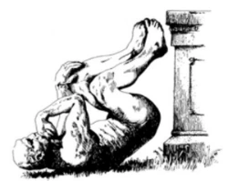 이그노벨상의 공식 마스코트. 로뎅의 작품 '생각하는 사람'이 바닥에 누워 하늘을 바라본다. 발상의 전환을 의미한다. 이그노벨상은 과학에 대한 사람들의 관심을 모으기 위해 만들어졌어. 1991년 하버드 대학에서 펴내는 유머 과학잡지 <기발한 연구>에서 노벨상을 패러디해서 만든 상이야.