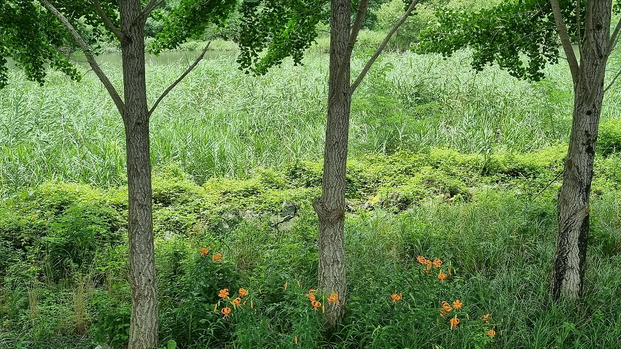 차로 마실 욕심으로 심었던 금송화는 살아나지 못했고, 아무 기대도 하지 않았던 참나리가 은행나무 아래서 멋스러운 자태로 피었다. 참나리는 한방에서 비늘줄기를 약재로 쓰는데, 진해강장효과가 있고, 백혈구감소증에 효과가 있으며, 진정작용, 항알레르기 작용 등 소용되는 곳이 많다고 한다.