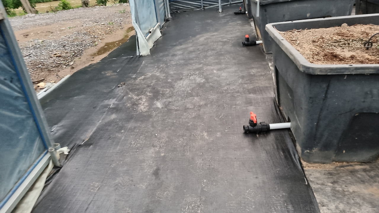 비닐하우스 중간은 바닥을 평편하게 만들어서 부직포를 깔고 ㄷ자 핀으로 고정하며 한 줄 한 줄 화분을 배치하고 흙을 채워 나가며 완성했었다. 700평 비닐하우스의 가장자리 작업을 내가 혼자서 다 했다. 여유분을 남겨서 바깥쪽 깊숙이 넣어 풀이 자라지 못하게 하는 작업이다. 출입구들의 바닥을 호미로 고르게 만들었다. 매트를 깔아서 깨끗하게 마무리하는데 땀이 줄줄 흐르는 힘든 작업인데도 내가 시간 가는 줄 모르고 즐겁게 일하고 있었다.