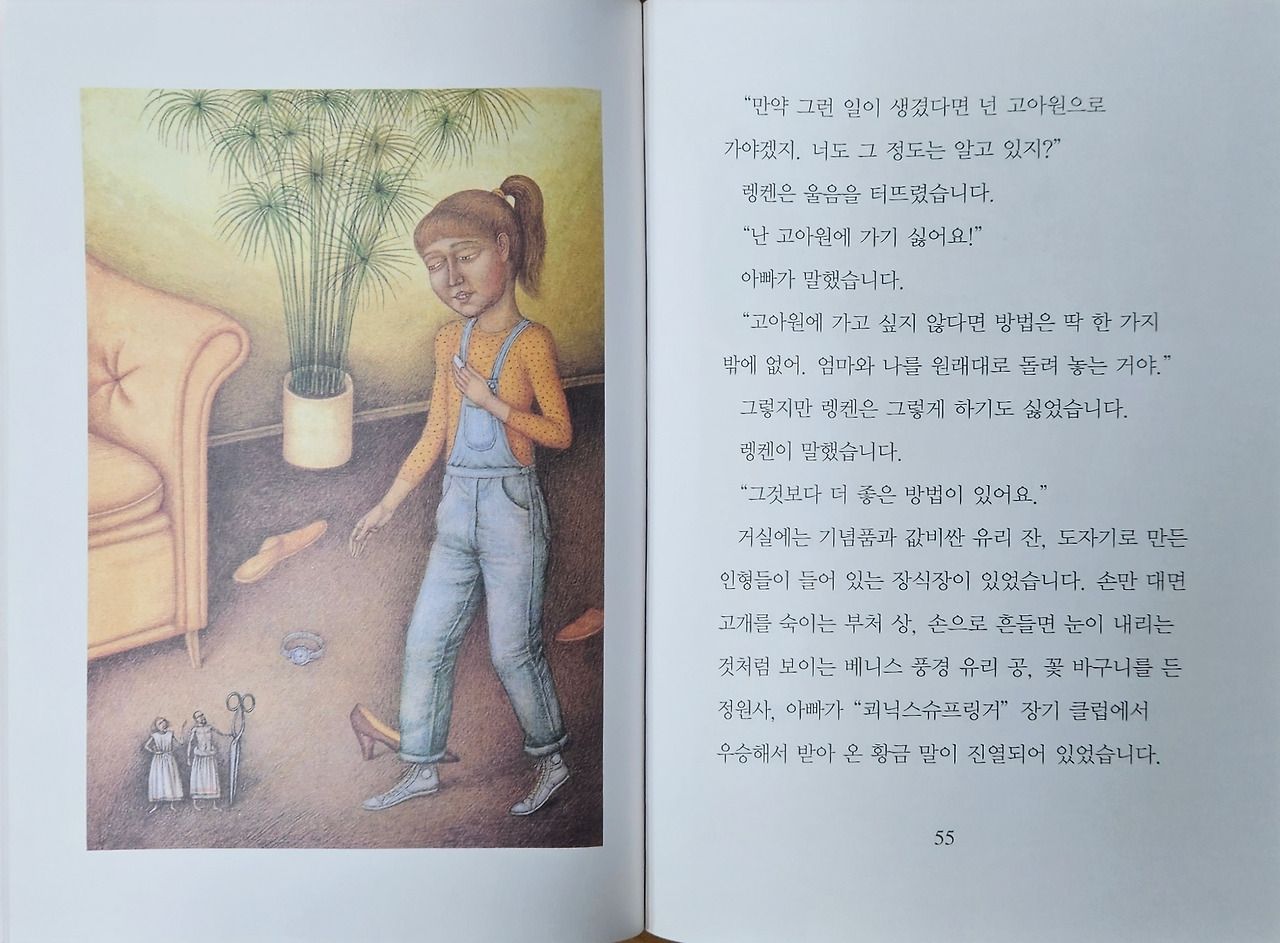 렝켄은 부모의 말을 거역하고 싶은 본능은 마법을 부리는 요정을 찾아가게 만든다. 부모의 몸이 자기보다 더 줄어들면 좋겠다는 단순하고 어처구니없는 상상이 실현되는 것을 보고 처음에는 신나 한다. 결국 부모가 성냥갑 속에 담길 만큼 작아질 수도 있다는 말에 부모를 원상태로 돌리려 한다. 부모의 보호가 없이 혼자가 된 렝켄은 두렵고 무서운 상황과 마주한다. 자신이 위험에 처하게 된다는 것을 알면서도 결국 부모와 렝켄은 자기 생각을 무조건 강요하지 않게 되고 서로를 존중하게 된다. 우여곡절을 겪지만, 요정에게 고마워하며 서로를 배려하며 행복하게 살아간다. 동화를 읽으며 다음 이야기가 궁금해서 순식간에 읽었다.
