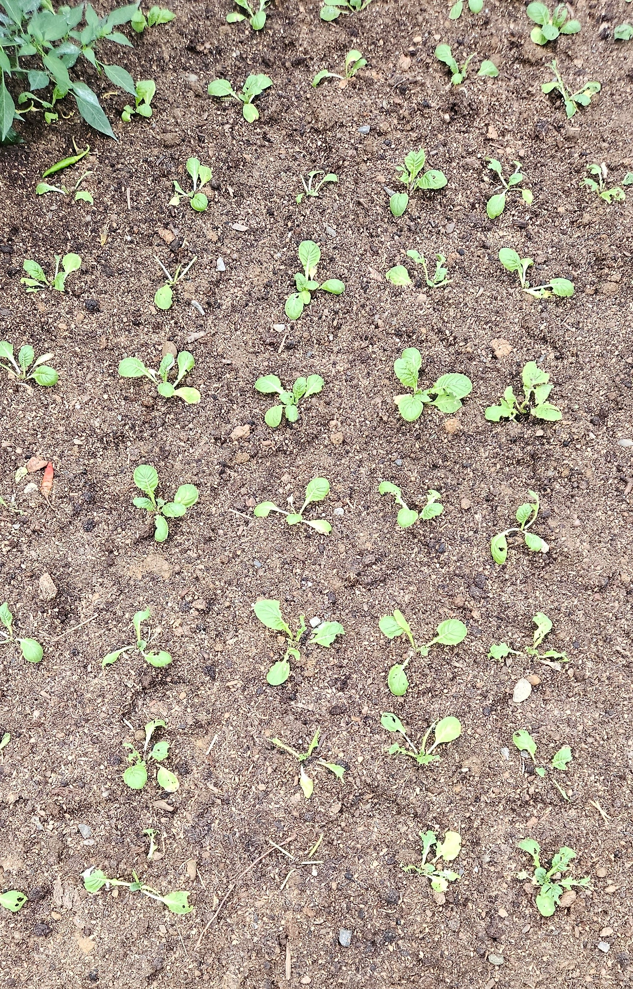 준비된 밭이 넓지 않아 바짝 붙여서 심었다가 적당히 자라면 솎아서 겉절이를 만들어 먹으면 되겠다고 심어 놓았더니, 며칠새에 벌레들이 허락도 안 받고 갉아먹었다. 키워서 나눠줄 곳이 줄 서 있는 사연 많은 배추인줄은 아는지 모르는지.....