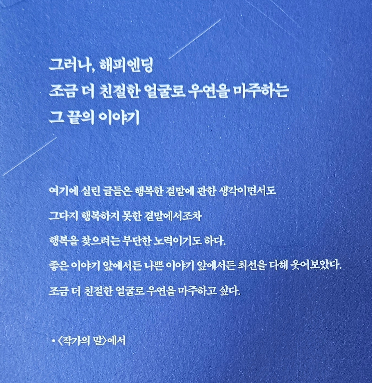 작가가 마지막 부분에 아끼고 아껴 쓴 당연한 말이지만, 쓰기 어려운 귀한 문장이다. 이렇게 happy ending~