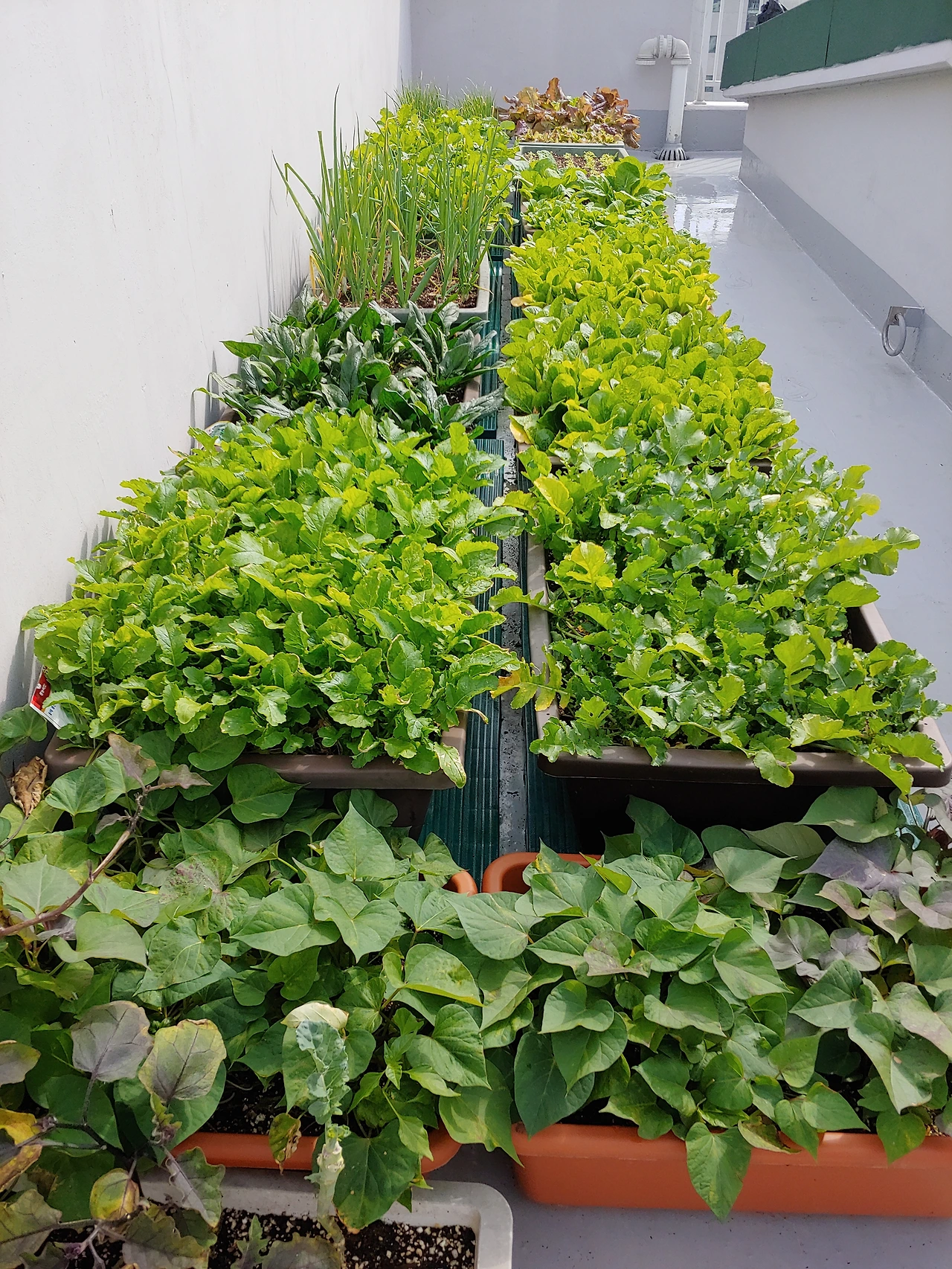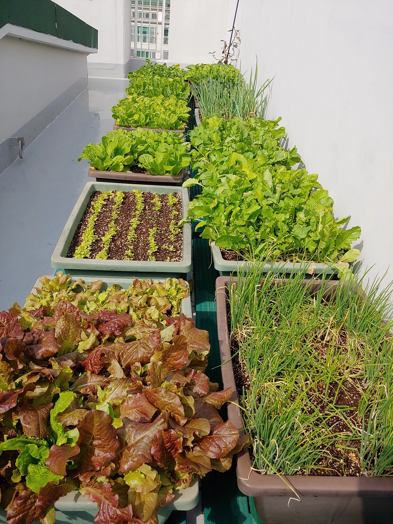 농장을 마련하기 전까지 20층 탑층에 살았다. 거름흙 50포를 올려서 갖은 채소들을 길러 먹었다.