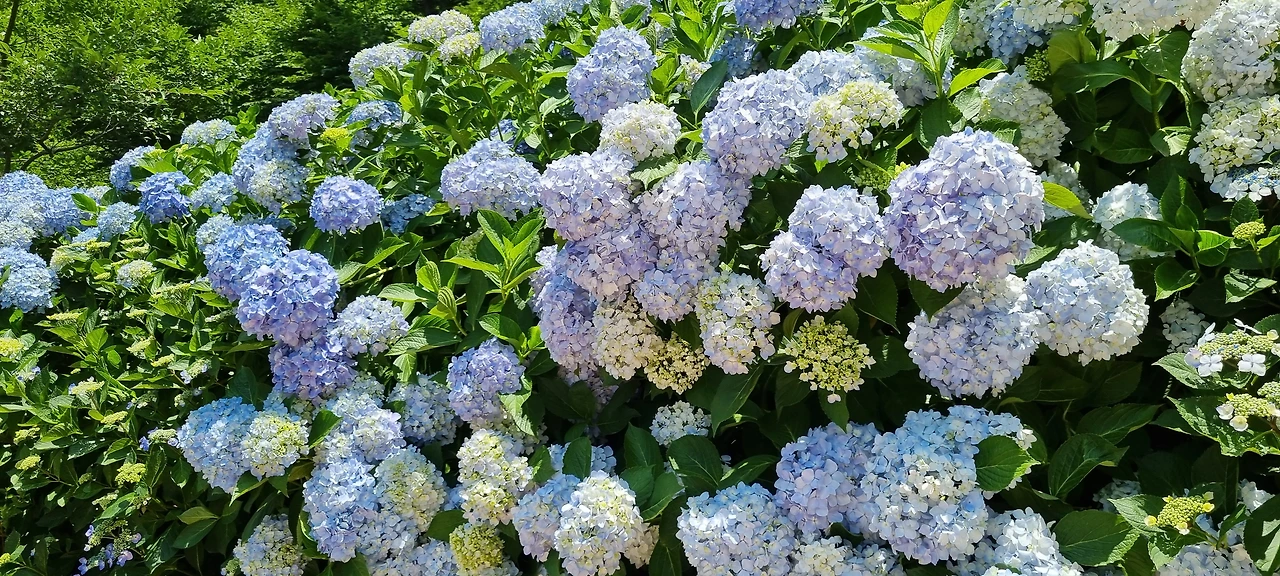 포레스트 수목원은 수국을 좋아해서 조성 첫해인 2019년에 둘째랑 단둘이 다녀왔었다. 그때는 한창 꽃을 심고 수목원을 만들어 가고 있던 터라 휑한 느낌이었다. 해마다 확장해 꾸며지고 있어 현재는 6만 평의 숲에 1,600여 종의 식물이 서식하고 있다. 친구들과 함께 갔을 때는 4회째 수국축제 기간이었다. 사람들을 피해서 사진 찍기 어려울 정도로 인파가 몰렸다.
