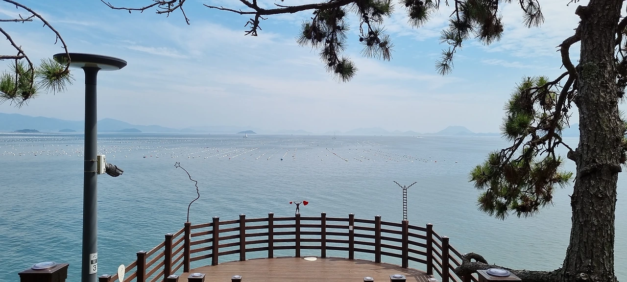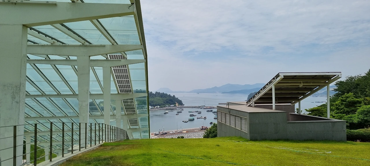 장도 미술관에는 환경, 인권 등 실천을 요구하는 설치미술이 전시되고 있었다. 바다는 넓은 품으로 손님을 맞아주는 넉넉함을 보여 주었다. 주변 경관이 표현하기 어려울 정도로 아름다웠다. 조경도 잘 되어있고, 자연을 이용한 둘렛 길도 좋았다. 앞서 걷는 둘째를 불러 사진 찍기에 바빴다. 더위에 너무 많이 걸어서 둘째가 힘들어했다. 미술관 한쪽에 있는 카페에서 커피와 아이스크림을 먹으며 바다를 바라보며 오전을 보냈다.