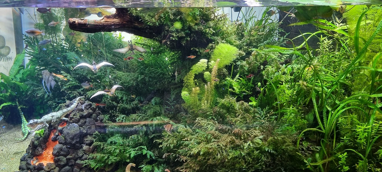 돔 형태의 수족관은 마치 바닷속에 들어와 있는 듯한 환상을 느끼게 했지만, 둘째는 편치 않았던 것 같다. 물속에서 쇼를 하는 인어님께는 손을 흔들며 반가워했다. 빨리 나가고 싶다고 해서 서둘러 나왔다. 수족관에서 더위를 피하겠다는 계획은 무모했다.