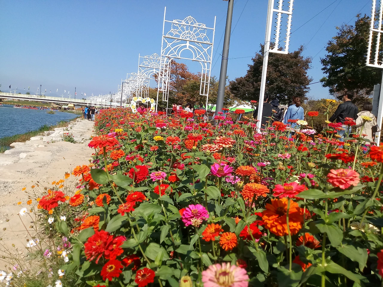 전국에서 가장 길고 아름다운 꽃강으로 총길이 약 4Km에 이른다. 초반과는 다르게 기후의 영향으로 축제기간에 꽃들이 만개하지 않은 경우가 생기는 아쉬움도 있다. 개인적으로는 축제 기간이 아닐 때가 한적하고 좋았다. 축제기간에는 맛있는 것 사 먹다 보면 많이 걸어도 운동효과가 없다는 부작용이 있다.