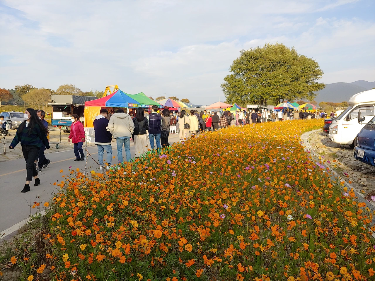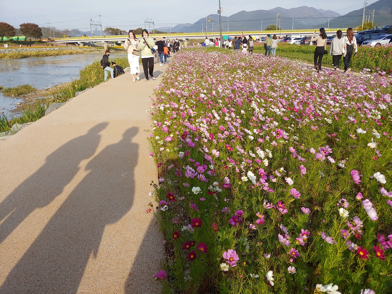 접근성이 좋다는 이유로 친구와 간 적도 있고, 가족들과 간 적도 있고, 문학단체에서 문학기행을 간 적도 있다. 특히, 둘째랑 가장 많이 가본 여행지다. 갈 때마다 더 넓어지고 더 길어지는 꽃강이다. 포토존도 늘어나고, 주차공간도 계속 늘어나지만, 축제 기간에는 걷는 사람들에게 밀려서 걷게 될 정도로 인파가 몰린다. 그래도 한 번도 실망한 적은 없는 믿고 가는 여행지다.