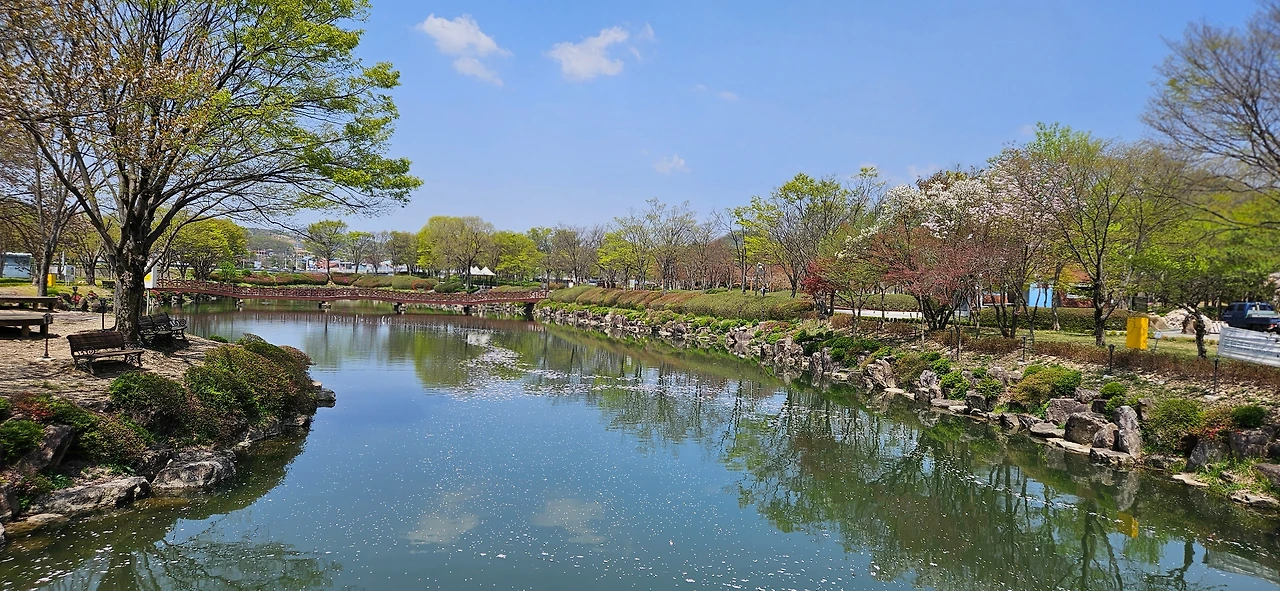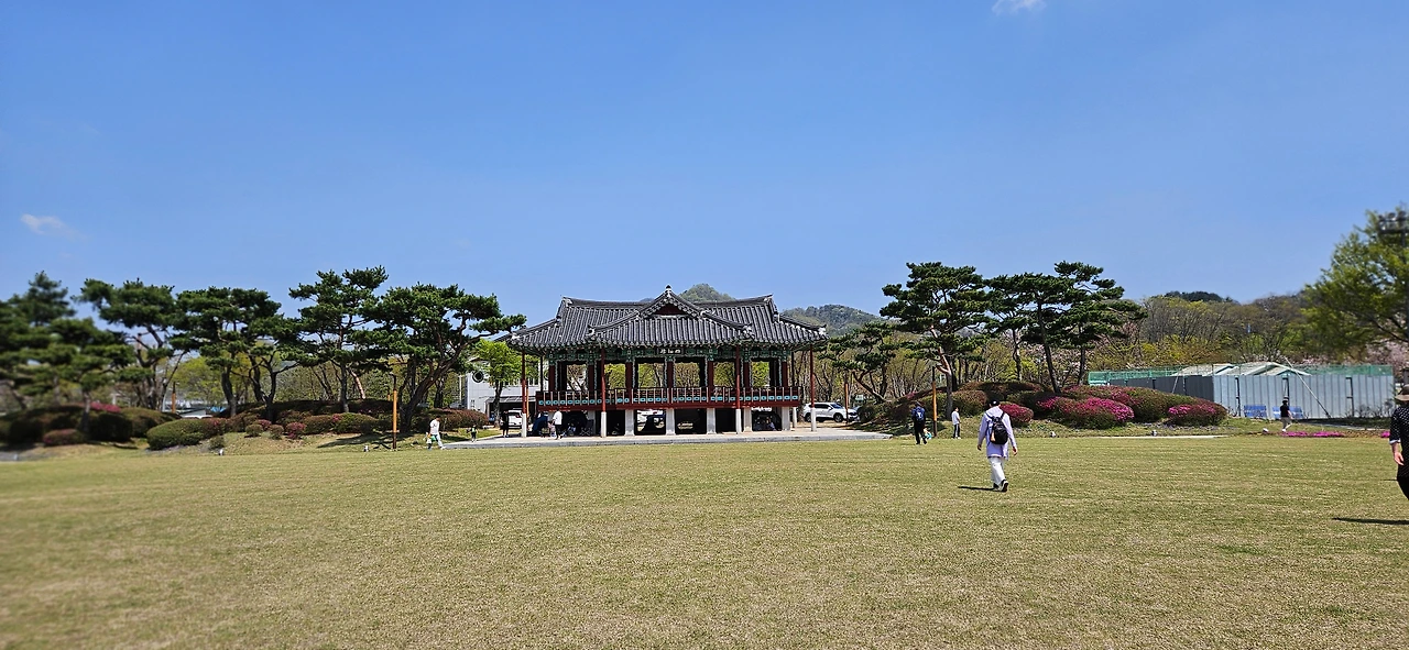 남편은 퇴직 후, 농사가 꿈이라서 망치질이라도 제대로 하려면 기본을 알아야 한다고 말했다. 사선대 옆에 있는 목재문화체험장 목재건축학교 4개월 코스를 수료했다. 어떤 날 기회가 생겨 함께 왔다가 혼자서 사선대를 구경했다. 이른 봄이라 수선화가 많이 피어 있었던 기억이 난다. 넓은 터에 물이 흐르는 공원이라 물에 비친 경치까지 아름다웠다. 남편이 수업을 듣는 내내 혼자만의 시간을 즐겼다. 카페에서 노트북을 켜고 좋은 경치를 보며 글을 쓰던 행복한 시간도 있었다.