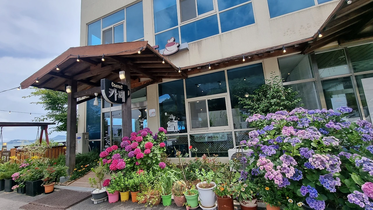 그네, 세모난 텐트 모양의 포토존, 바다를 향해 배치한 야외 의자에 앉은 뒷모습도 인생샷 각이다. 음료와 빵 등을 주문해서 야외로 나가 바다를 보며 음식을 먹을 수 있다. 그 모습을 보니, 젊은이들의 낭만 가득한 데이트 장소인 듯했다.