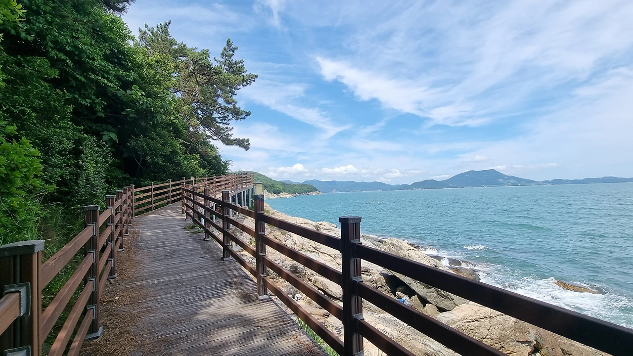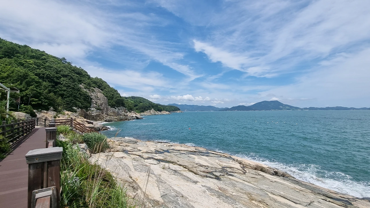 이렇게 좋은 경관에 카페를 지은 사람은 도대체 누구일까 싶을 만큼, 부럽고 예쁜 곳이었다. 해변 둘레길이 잘 만들어져서 깨끗한 바다와 맑은 공기를 만나며 산책할 수 있다. 정말 시름을 다 내려놓은 마음이었다. 해변의 기암괴석들, 평범해 보이지 않는 나무들. 자연은 그렇게 사람의 마음을 편안하게 만드는 마법이 있는 것 같았다.
