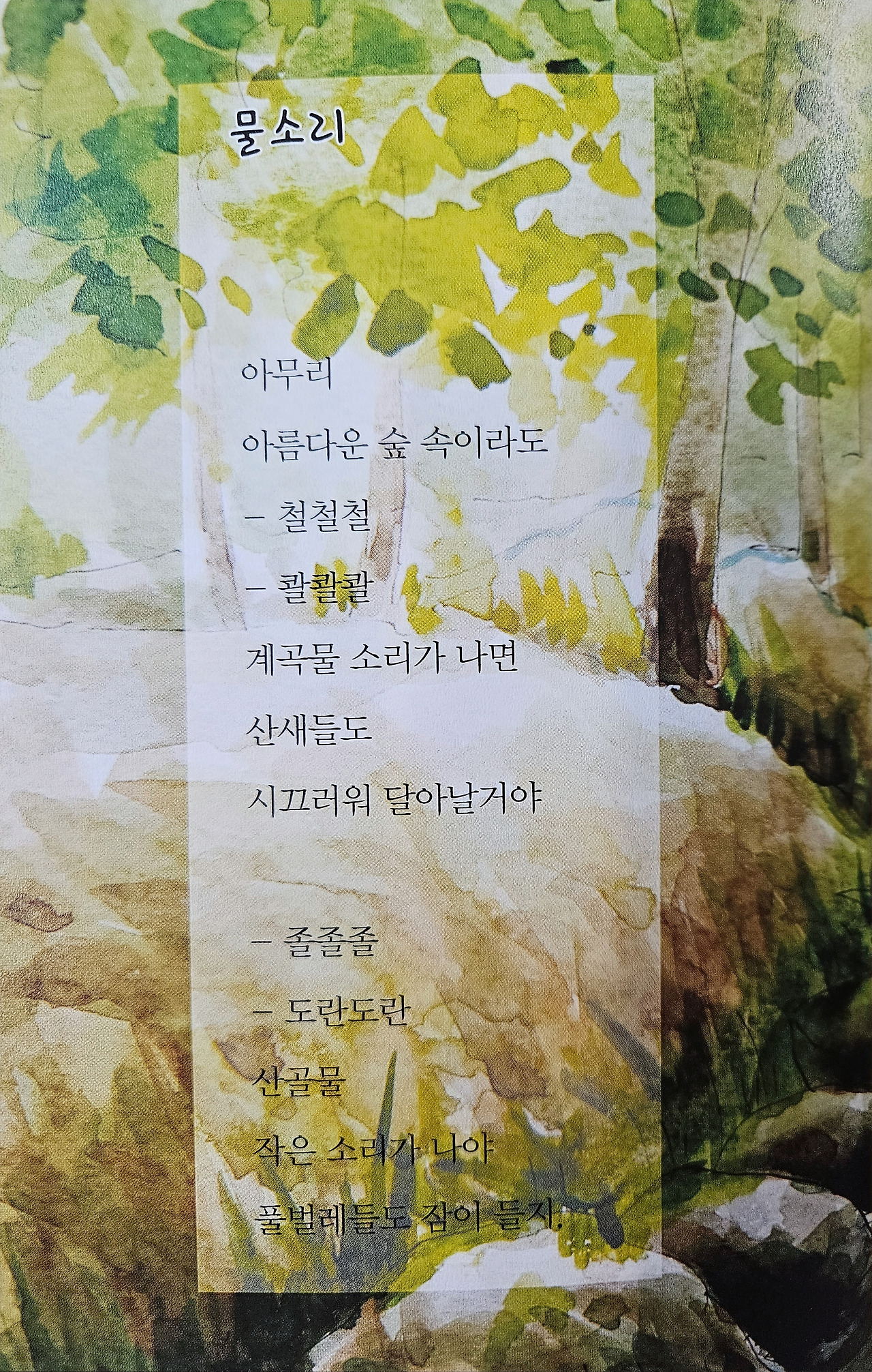 이 책이 귀하고 특별한 이유는 꽃 그림과, 꽃 이야기가 넘쳐난다는 것이다. 자연을 테마로 숲, 나무, 새, 꽃에 대한 동시집이라서 더 좋았다. 다음 시를 보자.