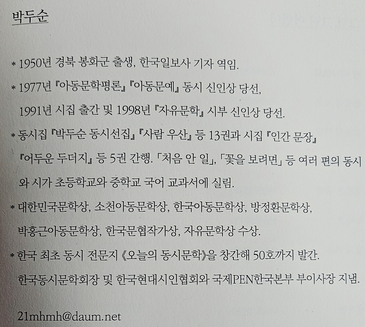 가슴 아픈 사회현상을 외면하지 않는 어른으로서의 책임감과 의무가 느껴진다. 자연에서 우주에서 동심을 발견하고 어린이들과 나누고자 하는 넉넉하고 따스한 마음이 읽혀 더욱 정감이 간다.