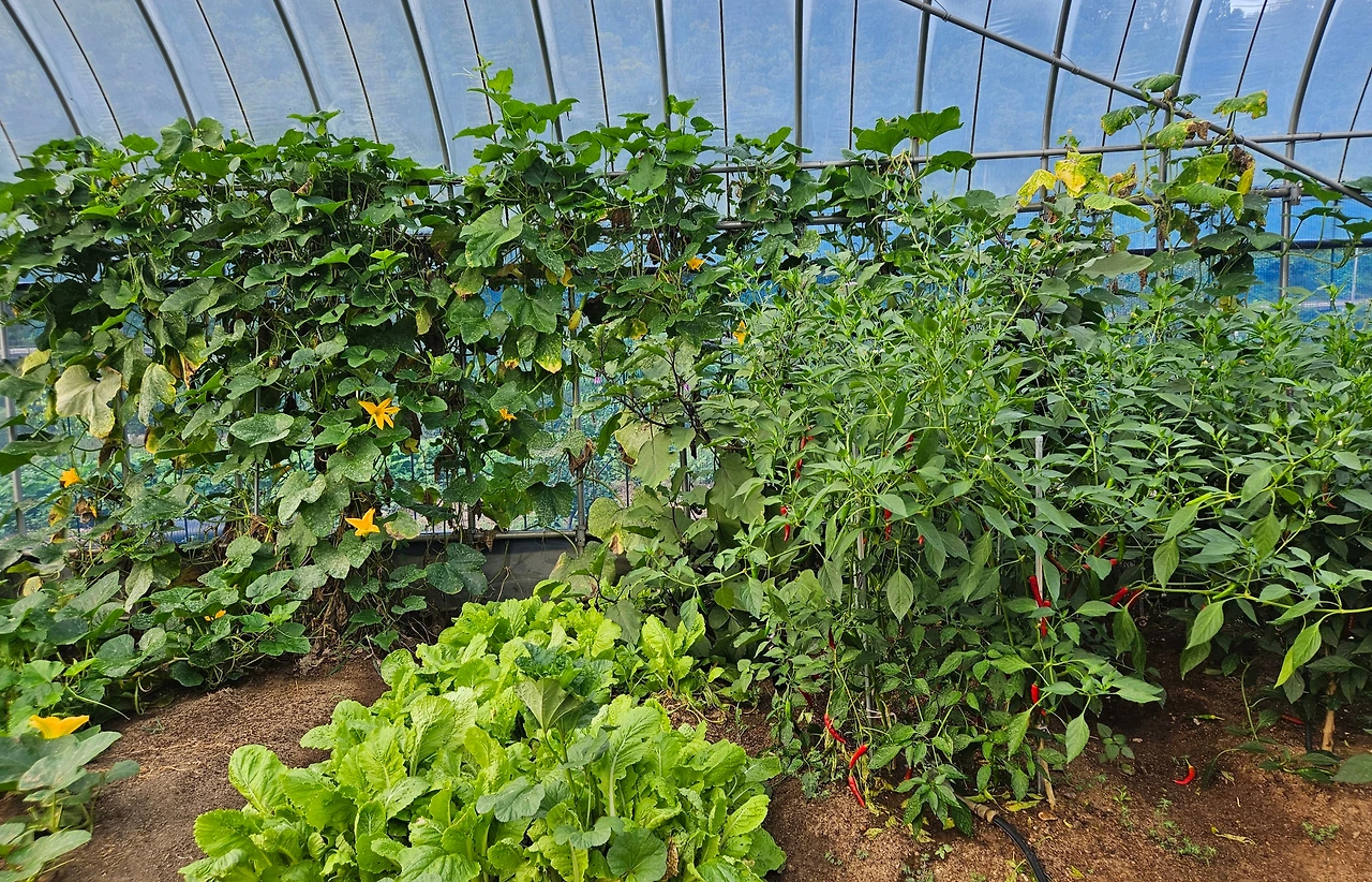 딱, 그만큼. 텃밭만큼의 소소한 농사일이면 좋겠다는 생각을 했던 적이 있었다. 지금은 비닐하우스 속의 텃밭을 벗어나 농원 주변으로 호박넝쿨이 자라고, 감자밭도 생기고, 그 자리가 콩밭과 들깨밭이 되는 등 점점 욕심이 생겨서 텃밭이 늘어나고는 있다. 비단, 텃밭을 늘리고 싶은 욕심만은 아니다. 그렇지 않으면 그 자리를 온갖 풀들이 차지하게 돼서 먹을 수 있는 작물을 심게 된다.