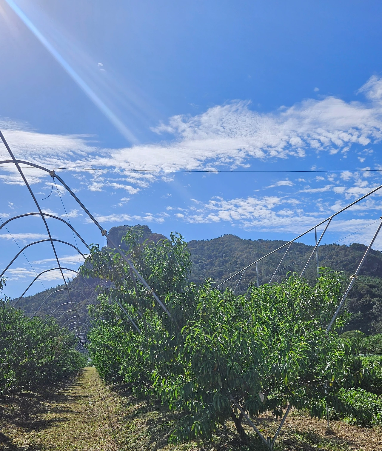 올봄에 심었던 복숭아나무 묘목이 잘 자라고 있다. 도장지들이 가운데로 자라서 통로를 꽉 막고 있는 형국이다. 바람이 잘 통하고 햇빛도 잘 들어가야 하는 어려움이 많다. 가운데로 자란 도장지를 잘라 주었더니, 시원하게 바람이 들어왔다. 마무리 작업은 이주까지 완성할 계획이다.