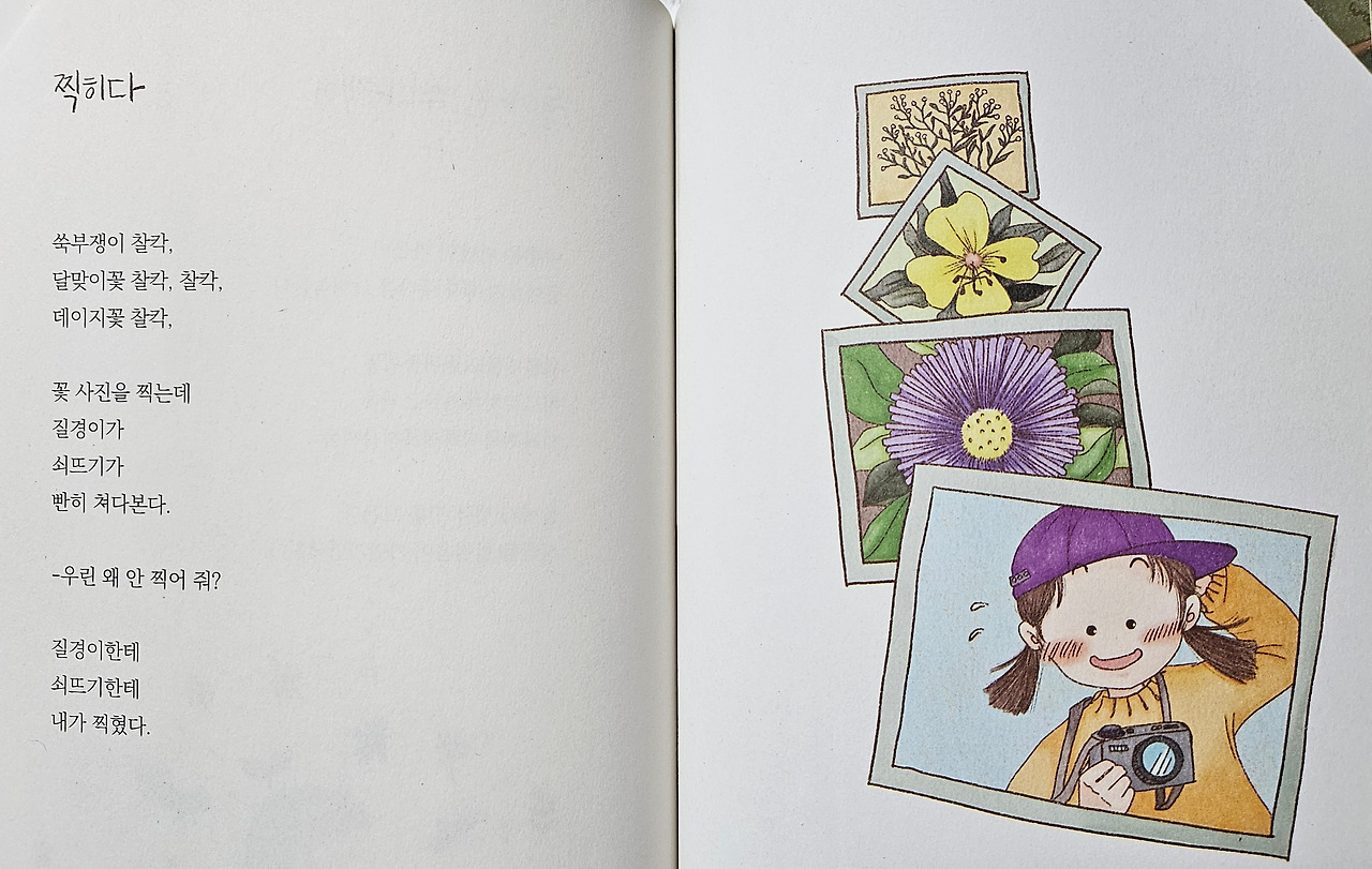 『엉뚱한 집달팽이』에는 맑은 아이가 사는 세상이라는 생각이 들었다. 자연에 대한 세심하게 들여다봄과 따스한 마음이 느껴지는 책이다. 작고 여린 것들에 대한 애착과 생명을 사랑하는 마음, 나눔과 배려가 두드러진다. 시들이 작가의 크고 넓은 마음을 보여준다.