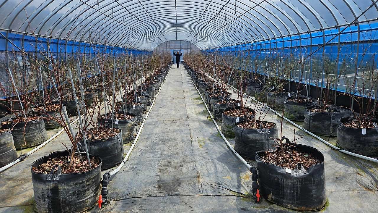 블루베리 큰 하우스와 별도로 관리하고 있는 작은 하우스다. 144개의 블루베리 나무가 플라스틱 화분이 아닌, 부직포 화분에서 자라고 있다. 일이 하도 바빠서 엄두가 나지 않아 이곳의 이파리를 제거하지 않고 그냥 두려고 했는데, 너무 빽빽하게 자라고 있어서 가지치기를 겸한, 이파리 따기 작업을 하고 있다.