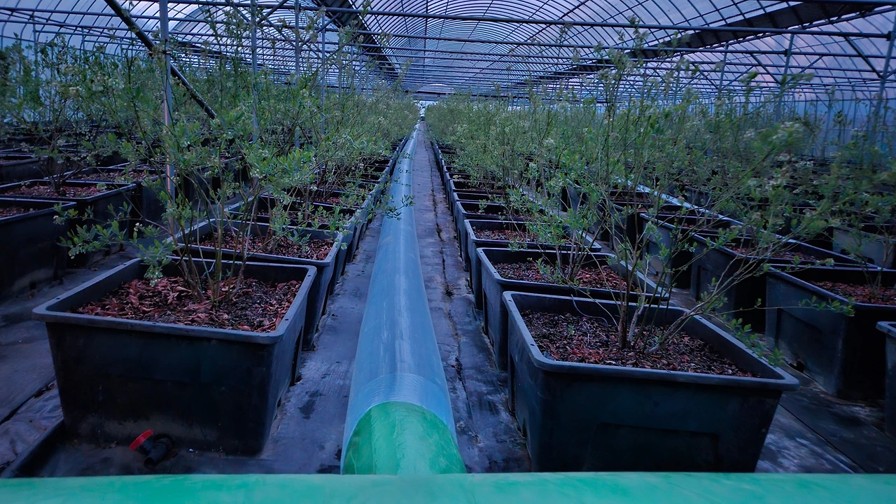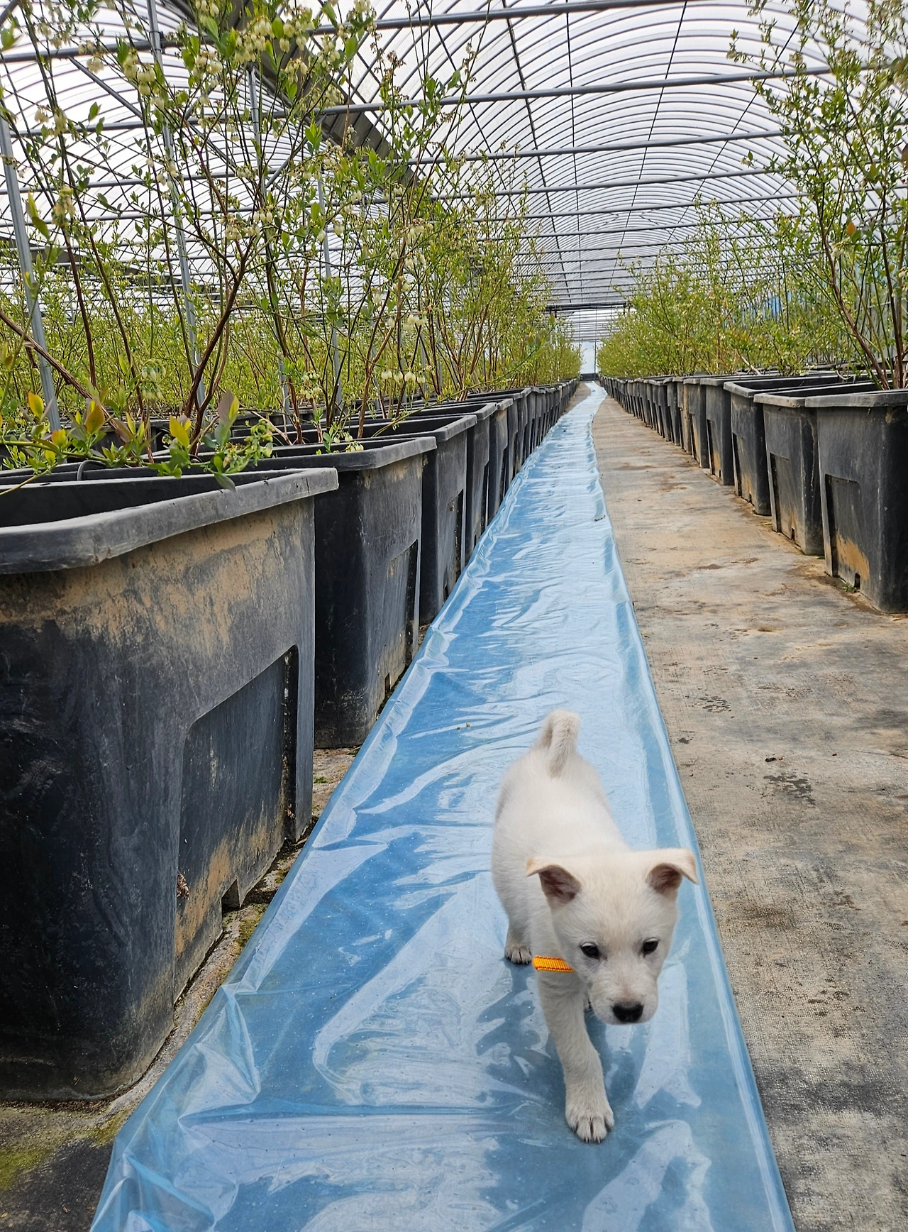 블루베리 나무들에 이파리가 모두 나오고, 열매가 달리기 시작하면, 화분이 꽉 차고 통로까지 펼쳐지게 된다. 열매의 무게 때문에 나무들이 아래로 쳐지면서 통로가 사람이 다니기 불편해진다. 열매를 건드려서 떨어지게 만들기 때문이다.