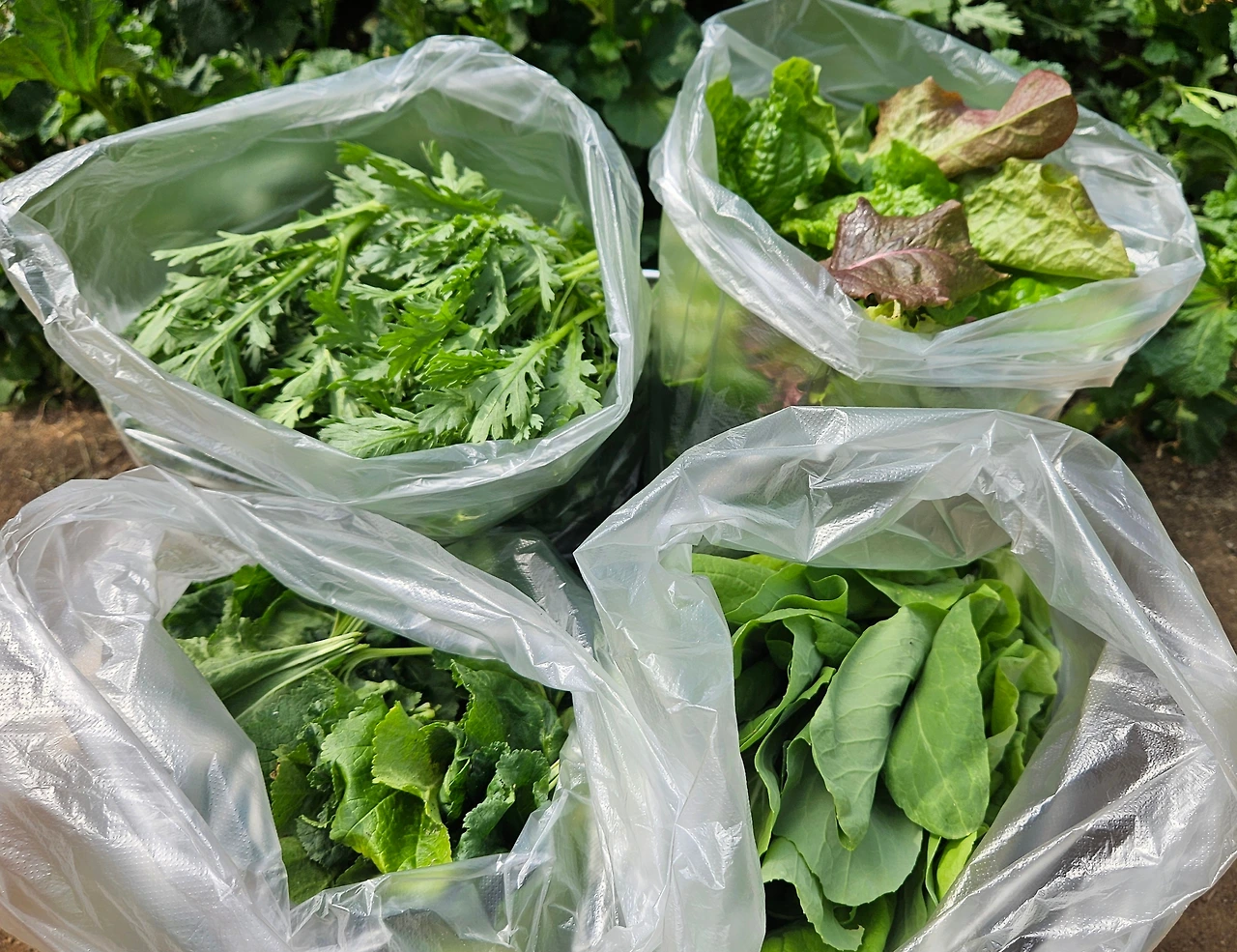 텃밭에서 야채들을 수확했다. 겨울에 죽은 줄 알았던 상추들이 손가락만큼 에서 손바닥만큼씩 커지고 있다. 봄은 그런 것이다. 죽었던 것들도 살려 내는 것. 아니, 흙이 품고 있던 것들을 깨어나게 하는 것. 농부가 되기 전에는 매번 친정엄마가 채소들을 길러서 주셨다. 내가 농부가 되고부터 내가 기른 채소들을 가끔 엄마께 가져다 드린다. 오늘은 상추, 배추, 쑥갓, 아욱이다.