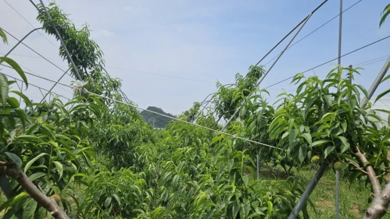 복숭아나무의 병해충 방제를 위해서 봉지를 씌우는 작업을 했다. 적과 작업이 마무리되지 안않았지만, 급하게 봉지를 싸야 하는 품종도 있어서 어쩔 수 없이 급하게 봉지를 쌌다. 나무와 열매가 초록색일 때는 복숭아가 달려 있는 나무인 줄 구분하기가 쉽지 않았는데, 하얗게 봉지를 싸 놓고 보지 주렁주렁 매달린 하얀 봉지 속에 복숭아가 있다는 것을 알 수 있었다.
