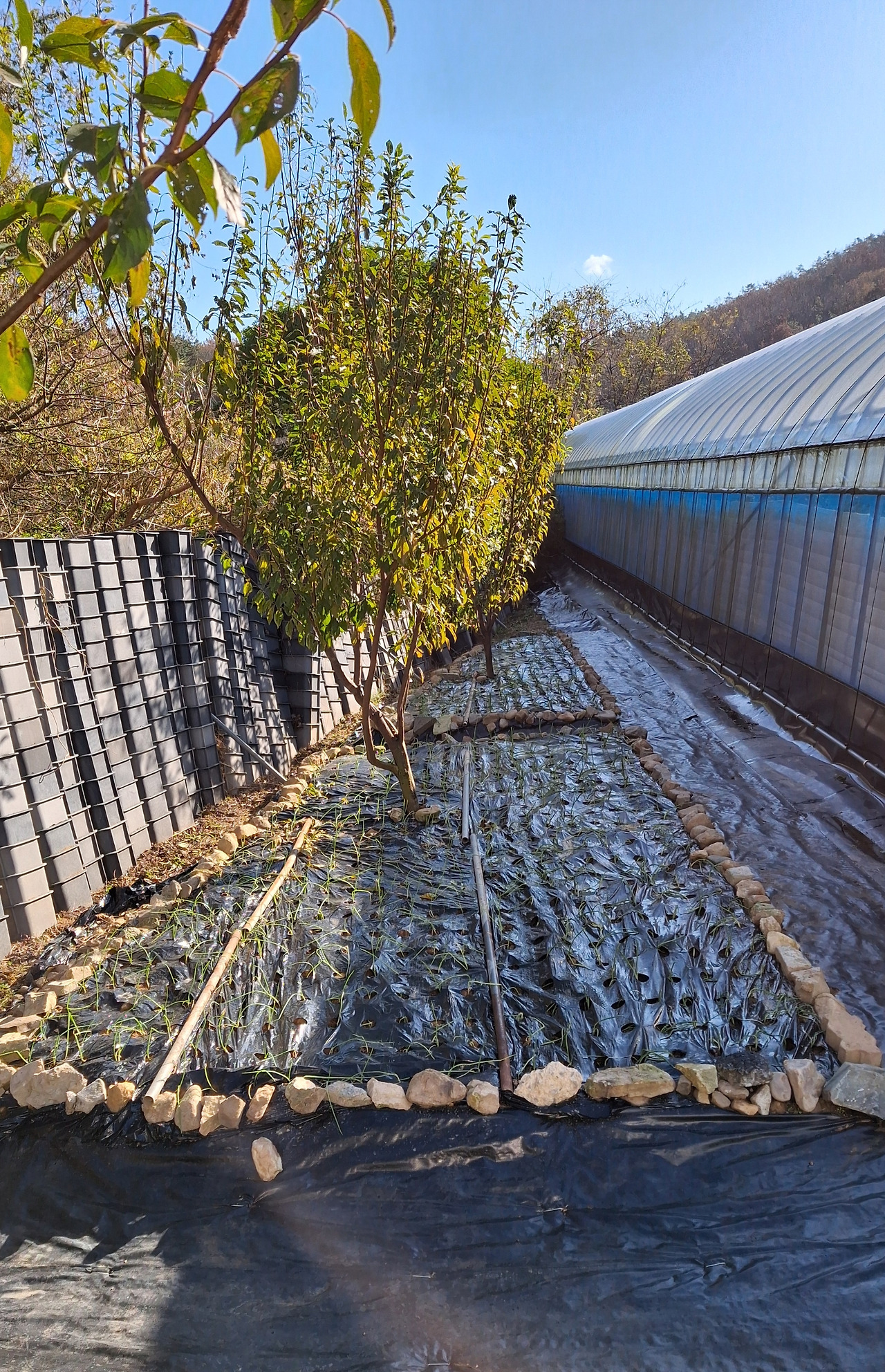 블루베리 하우스 보온커튼 완성했다. 추운 날씨에는 블루베리 나무들이 인큐베이터에 들어간 것처럼 온도조절을 할 수 있다.