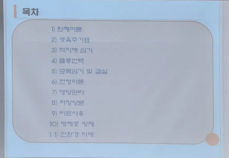 [25.12.17.] 화순군 복숭아 연합회 주최 고품질 복숭아 재배기술교육을 들었다.