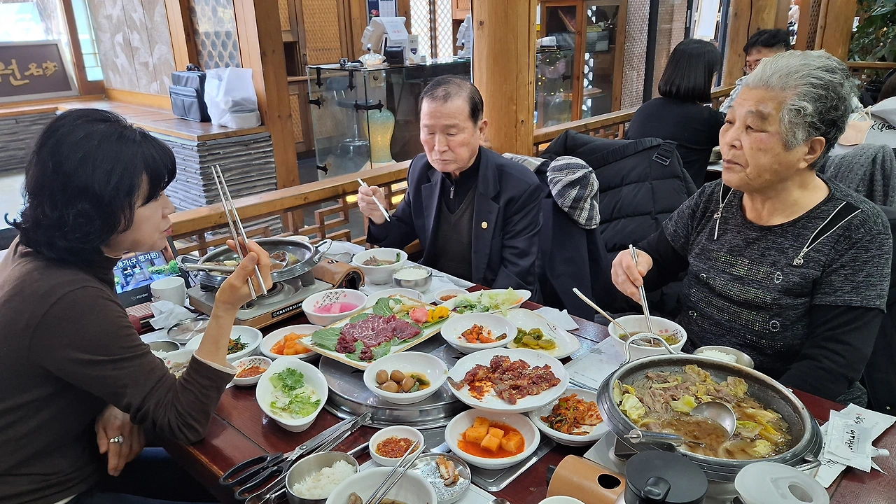 지난 23일에 낙상으로 눈주위를 크게 다치신 엄마를 모시고 안과에서 2주 후에 점검하기로 예약되어 있어서 다녀왔다. 병원 근처에서 근무하는 사촌언니가 점심대접을 하겠다고 부모님 함께 오시면 좋겠다고 해서 아빠도 동행했다. 안과에서는 다행히 엄마 눈이 많이 좋아지셨다고 한 달 후에 마지막 점검을 하자고 예약을 잡아 주셨다.