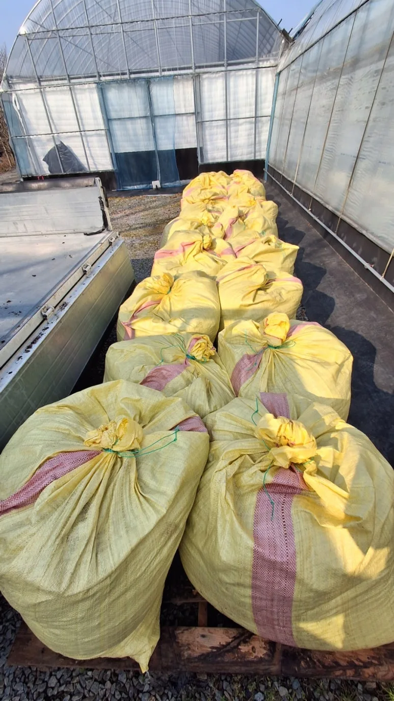 [26.1.15.] 블루베리 화분에 올려 줄 잣 껍질을 옮기는 작업을 했다.