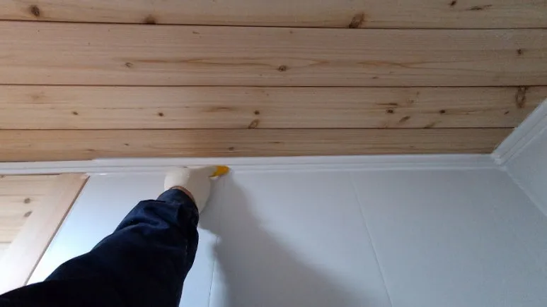 천장 몰딩은 실리콘을 틈에 바르고, 몰딩을 붙인 후, 타카로 고정했다.