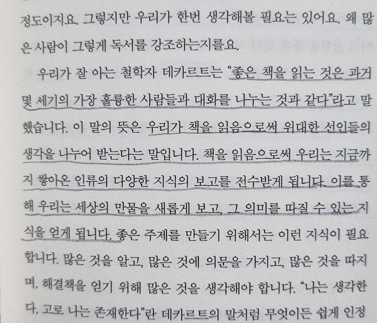 올바른 독서와 글쓰기를 배우고 싶어서 그에 대한 다양한 책들을 찾아 정독하며 읽었다. 나탈리 골드버그의 책 『뼛속까지 내려가서 써라』는 제목처럼 내용도 흡인력이 강해서 흠뻑 빠져 읽었다. 정희모 작가의 『글쓰기의 전략』, 스티븐 킹의 『유혹하는 글쓰기』, 모티머 J. 애들러의 『독서의 기술』, 다치바나 다카시 외 『읽기의 힘, 듣기의 힘』 등의 글쓰기와 독서에 관한 책들과 만나게 된다.