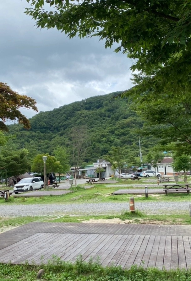 화덕에 불을 피워 저녁 먹을 준비를 했다. 빨간 숯불 위에서 고기와 소시지가 지글거렸다. 캠핑 온 사람들이 많아 다닥다닥 텐트를 쳤기 때문에 옆 사람들의 이야기와 먹는 모습이 보였고, 밤늦은 시간까지 떠들고 노는 소리도 캠핑장 분위기가 그러려니 했다. 사그라지는 숯불처럼 아이들은 잠에 빠졌고, 부슬부슬 비는 내리고, 밤은 깊어 갔다. 계곡에 물이 불어나 쿵쿵거리는 물소리가 빗소리와 함께 무섭게 들렸다.