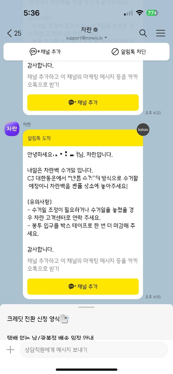 각 단계마다 앱/카톡을 통해 알림도 오기 때문에 단계 별로 빠르게 확인하여 다음 단계를 진행할 수 있다.
